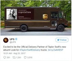 I don’t think I’ve ever seen advertising on UPS trucks ever…have you? Of course Taylor Swift would figure out a way to do it… everyone has their price right? More HERE