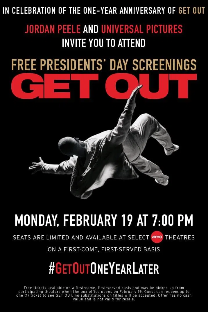 This Presidents' Day head to participating @AMCTheatres across the country for a free screening of #GetOut to celebrate the one-year anniversary. #GetOutOneYearLater Find out more here: https://t.co/P...