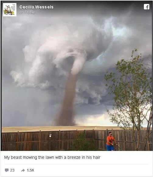 Why? Why in the world would you want to mow the lawn while a tornado is in the area? Crazy! Read the story HERE!