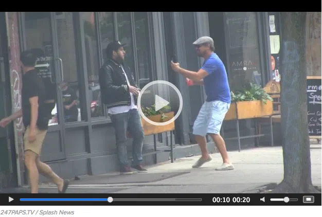 There’s Jonah Hill minding his own business on a sidewalk in New York City when friend Leonardo DiCaprio sees him, runs up to him with his phone and acts like a fan!! Scares the crap out of Jona...